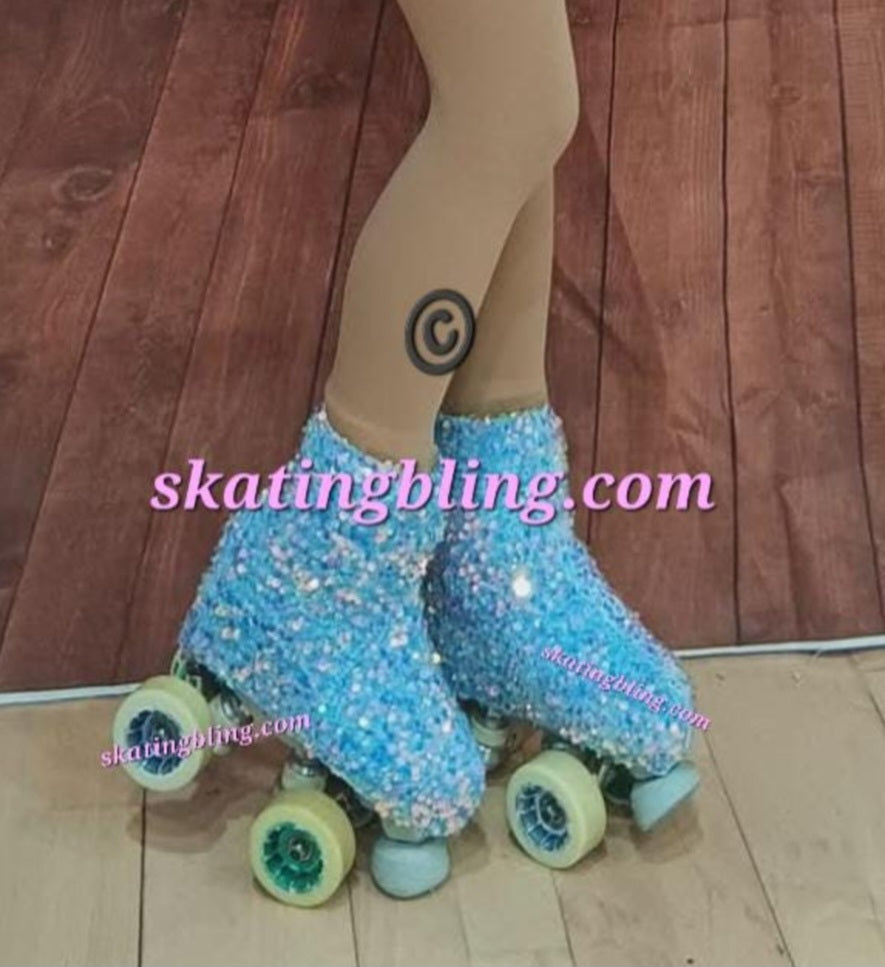 Our fairy dust range of boot cover's is one of our most popular and it's easy to see why. They mesmerise the spectators with their ever changing colours and sparkle as the skater moves around the rink. Their irredescent sequins capture the light and create a never ending display of sparkles.